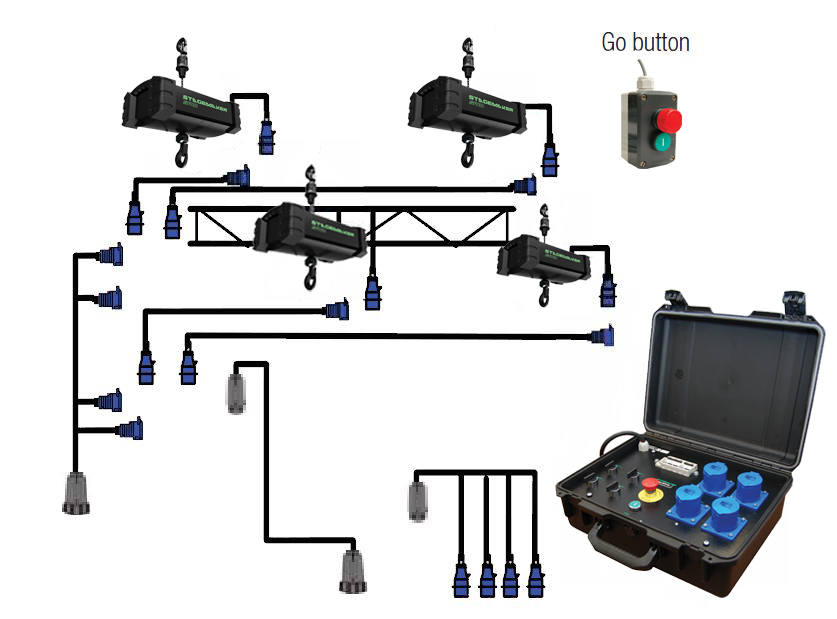 - Two hoists with intermediary CE splitter (up to 1.44 HP per channel at 230V-3Ph-60Hz)