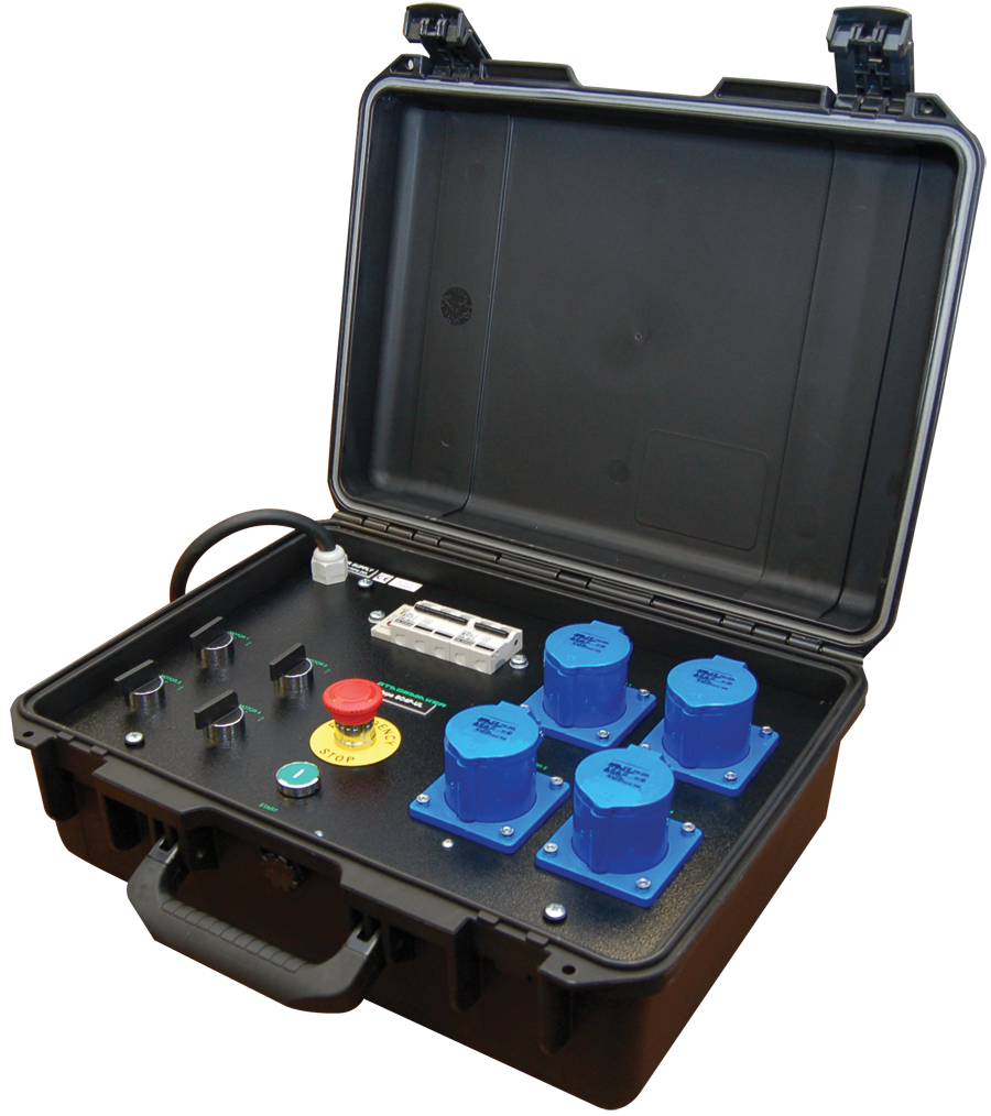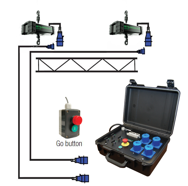 Control multiple hoists individually or together. The SC controls are built in to a durable ABS plastic hand case. The control functions are inside the hand case. A remote with the GO button (run command) and E-stop is available as an option.